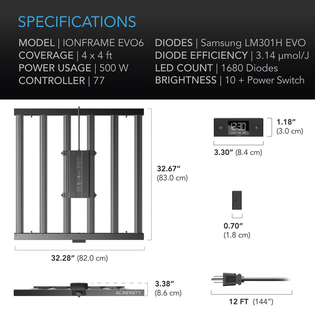 AC Infinity Ionframe EVO6 LED Grow Light (500W) - 4x4 ft