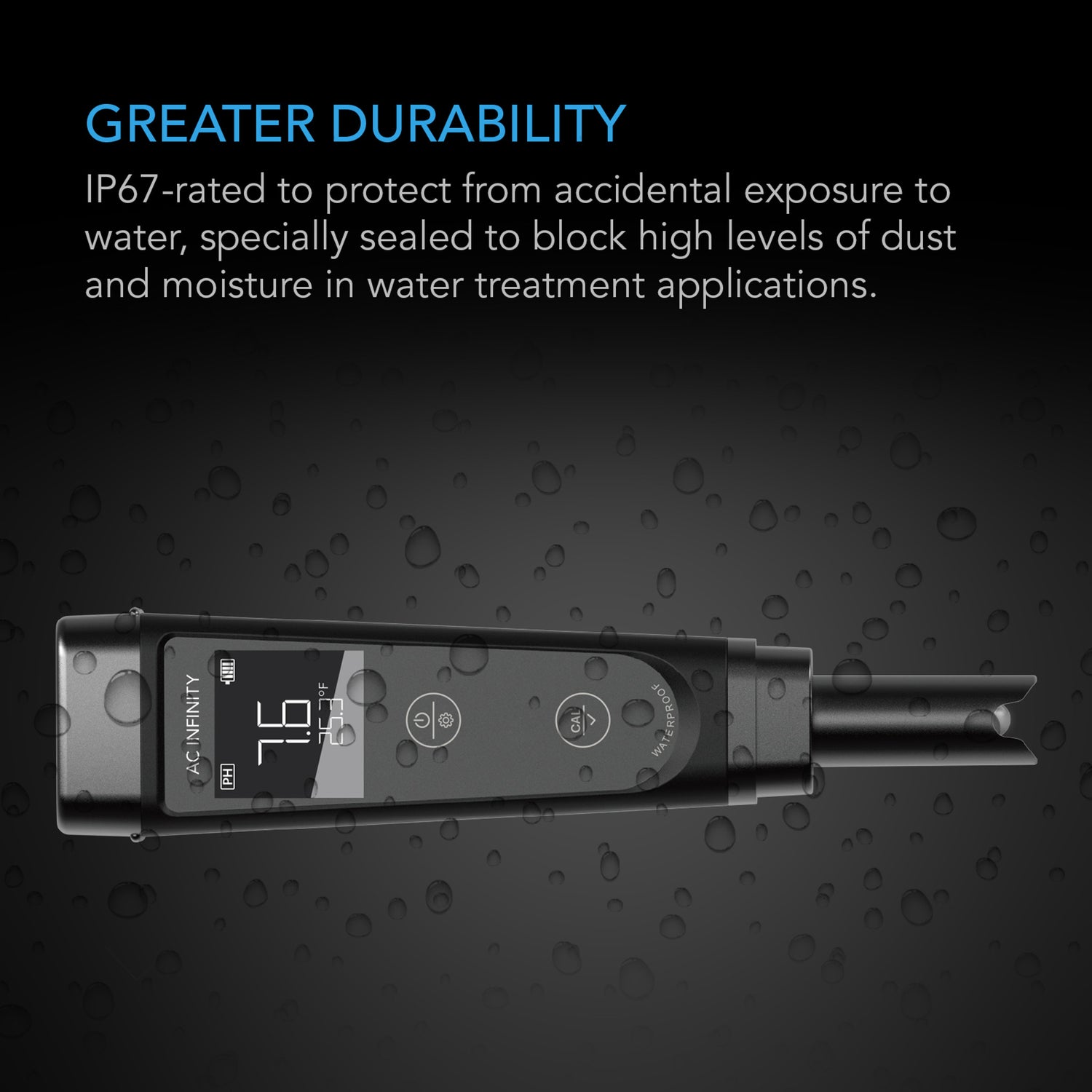 • Replaceable sensor probe with sensitive glass membrane delivers instant pH readings with pinpoint accuracy.