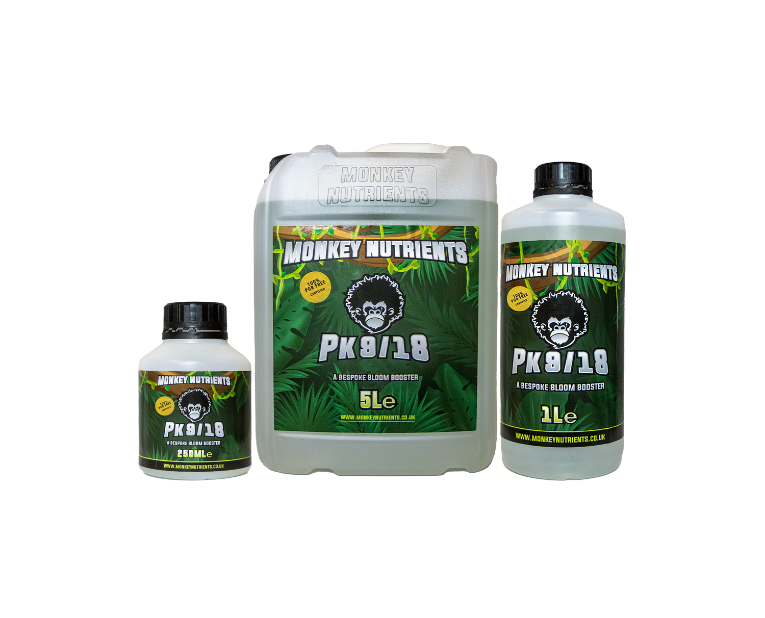 Monkey PK 9/18 Is a Phosphorus (P) and Potassium (K) supplement. It is designed to stimulate flower production and produce high levels of yield and flavour enhancing PK, when the plant needs it most. A PK boost early in bloom triggers the onset of fruit production, directing photosynthetic energy to shoots tips, creating flowering sites. During the crucial mid-flower point, allowing your plant access to optimum levels of PK can make or break harvest results. Through extensive research and testing we found the ratio PK 9/18 is the perfect concentration required for plants to reach their full harvest potential.