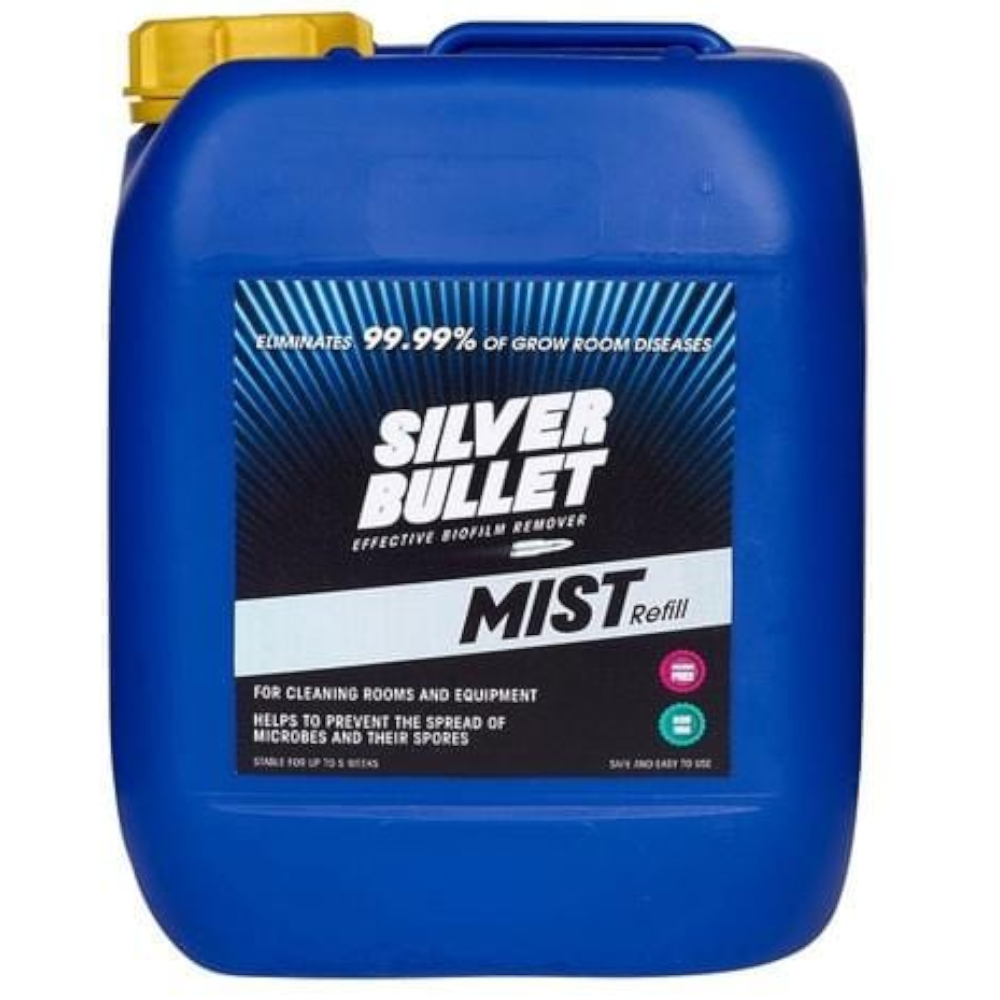 Silver Bullet Mist is the perfect product for those who do not want to leave sterilization and cleanliness to chance in their grow room. Silver Bullet Mist destroys 99.99% of grow room problems, such as grey mould (botrytis), powdery mildew, Pythium, Fusarium, Yellow and Brown leaf spot.
