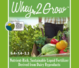 Whey2Grow™ is a biobased fertilizer designed for agricultural, turf and plant nursery care. It is a multipurpose non-synthetic liquid fertilizer derived from the fermentation of dairy derivatives such as whey and whey permeate with Lactobacillus. Great for consumers looking for a biobased, sustainably produced quality plant food.
